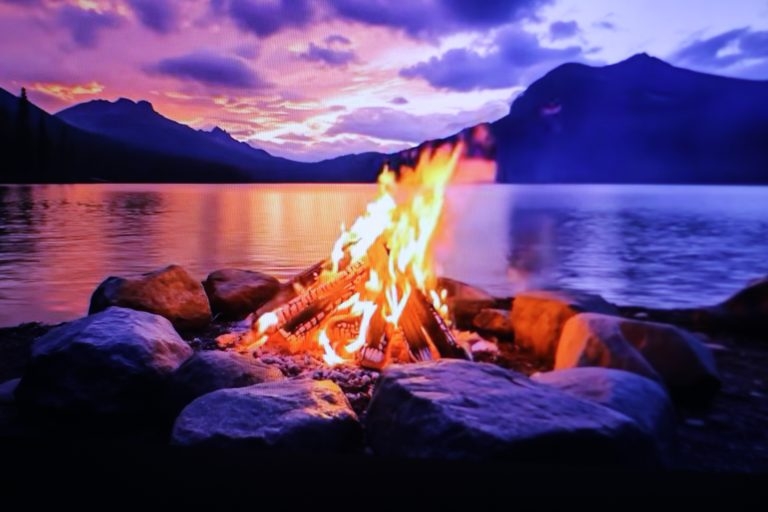 森の中、湖畔、雪山の焚き火、薪ストーブの炎まで。