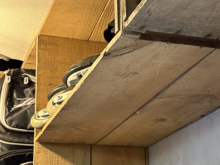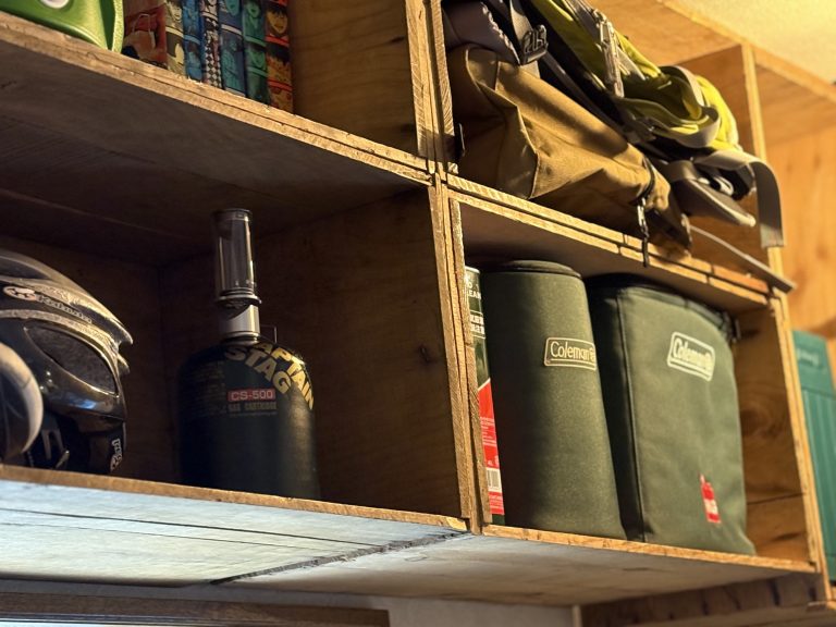 この棚は、「何を入れるか」を先に決めて作ったわけでもなく、キャンプ道具だったり、使うかどうか分からない物だったり、とりあえず置いておきたい物だったり。その時その時で、中身が変わっていく前提の収納。それも、リンゴ箱には合っている気がする。